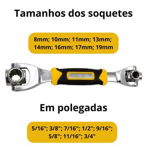 Versatilidade: 48 funções em uma única ferramenta, adaptando-se a diversos tipos de parafusos e porcas.Precisão: Cabeças rotativas em 360° e inclinação de até 45° para um ajuste perfeito.Durabilidade: Construída em aço de alta qualidade, garantindo longa vida útil.Conforto: Punho emborrachado para maior segurança e conforto durante o uso.Praticidade: Leve e compacta, ideal para levar para qualquer lugar.Características: