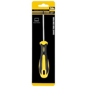 - Marca: EDA - Referência: 0HE - Medida: T8 - Material: Aço cromo vanádio - Ponta imantada com furo de segurança - Comprimento: 100mm - Indicado para Consoles, controles e aparelhos eletrônicos em geral - A chave torx é uma ferramenta utilizada para aperto e desaperto de parafusos com perfil torx. Ela auxilia na transferência de torque aos parafusos, facilitando a inserção e remoção dos mesmos. - Garantia: 90 dias