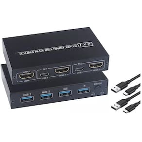 - Suporta 2 Entradas HDMI com Saída para 1 HDMI, os 2 hosts de computador compartilham 1 único Monitor/TV HDMI. - Suporta entrada de mouse e teclado, os 2 hosts de computador compartilham um conjunto de teclado e mouse. - Outras 2 portas USB para impressora e/ou pendrive, especialmente adequadas para escritório, reuniões e videoconferência. - Plug and play, fácil e conveniente. - Com o botão switch, você pode optar por operar facilmente em qualquer dos 1 dos computadores. - Suporta resolução Ultra-HD de 2K x 4K 30Hz e 4K alta definição, mostra uma imagem mais nítida.