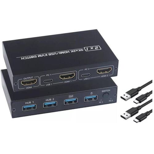 Chaveador Kvm Switch 2x1 Hub Hdmi Usb 3.0 Com Suporte 4K