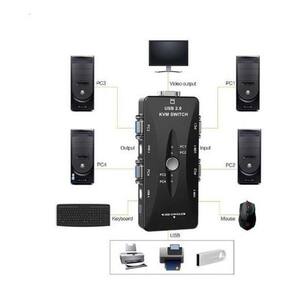 Este produto permite que você controle até 4 PC é a partir de um Teclado e mouse USB. Ele é ótimo para estações de trabalho, bancos de ensaio, redes ou em qualquer lugar foram tasking entre computadores é necessária. Fácil de instalar e operar, simplesmente alternar entre computadores pelo Push-Botão na parte superior do dispositivo. Ean: 4710423772557