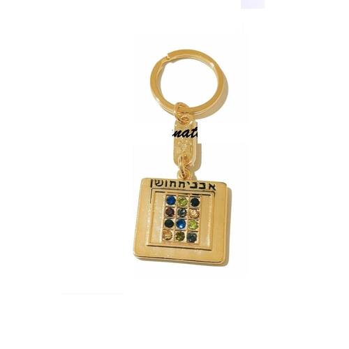 01 chaveiro dourado de um lado pedras das 12 tribos e do outro jerusalém em hebraico - 3 cm de diametro do chaveiro e 9 cm total do chaveiro.