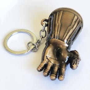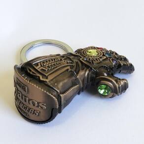 Chaveiro 3D Manopla Thanos - Oficial Marvel Agora é a hora de todos os seus pedidos serem realizados... Sim você pode parar de buscar as joias do infinito Elas estão todas aqui, reunidas e já acopladas na luva/chaveiro mais legal de todas as galáxias. O chaveiro 3D manopla do infinito é um produto oficial Marvel. Os detalhes são realmente incríveis Chaveiro vêm em um blíster oficial da marca e é produzido em metal. Várias partes escritas são em relevo, o que proporciona uma maior riqueza a peça. Dimensões aproximada do produto 7,5cm x 3,5cm Peso aproximado: 420 gramas