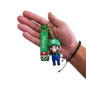 Chaveiro 3D Personagem Luigi com Mosquetão Mario Bros Ideal para quem ama o universo dos jogos O chaveiro tridimensional do Luigi traz o personagem icônico em uma versão super divertida. Fabricado em silicone resistente e detalhado, ele acompanha uma alça personalizada com o nome Mario e um mini pingente com o rosto do personagem, sendo perfeito para mochilas, bolsas ou chaves. Características: - Personagem: Luigi inspirado na série Super Irmãos ; - Altura do boneco: 7 cm aprox. ; - Peso: 50g aprox. ; - Material: Silicone e metal; - Acompanha argola metálica e gancho ; - Alça emborrachada com estampa temática. Indicação: - Recomendado para maiores de 3 anos; - Excelente escolha para fãs, colecionadores ou como presente criativo. Atenção: Produto com partes pequenas. Não recomendado para crianças menores de 3 anos. Uso sob supervisão de um adulto. Marca: Não Informado