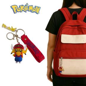 Chaveiro 3D Pikachu Vermelho Com Mosquetão Bolsa Mochila