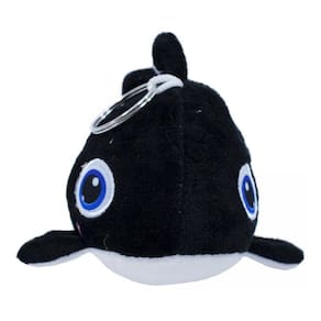 Chaveiro com enfeite de pelúcia em forma de baleia Orca com bochechas rosadas. Material: poliéster; Enchimento: fibra de poliéster Dimensões aproximadas altura 12 cm, largura 13 e comprimento 15 cm com a cauda levantada. Certificado: Produto certificado pelo ICEPEX, Órgão acreditado pela CGCRE do INMETRO.
