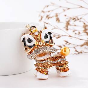 Material: liga: 3* 5 cm Peso: 65 g Design tradicional de dança do leão — Inspirado na dança cultural chinesa do leão, este chaveiro apresenta detalhes intrincados de esmalte e strass cintilantes, representando força e boa sorte. Artesanato em liga premium — Feito de liga de zinco durável com revestimento de ouro de alto brilho, garantindo cor, brilho e resistência duradouros ao desgaste. Acabamento requintado em strass — adornado com cristais finos que brilham lindamente sob a luz, aprimorando as características detalhadas do leão e a aparência festiva. Uso decorativo versátil — perfeito para prender às chaves do carro, bolsas, mochilas ou carteiras, adicionando um toque oriental elegante aos seus acessórios. Tamanho compacto e elegante — Medindo 3 × 5 cm e pesando 65 g, este chaveiro de leão é sólido e portátil, o que o torna um pingente sofisticado para o uso diário.