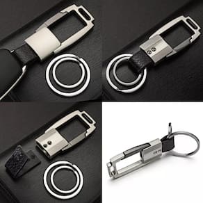 Acessório fabricado com materiais de alta qualidade, o chaveiro em aço tem acabamento em couro ecológico e metal que garante um brilho. Essa é pra você que deseja um detalhe cheio de estilo até mesmo para suas chaves.