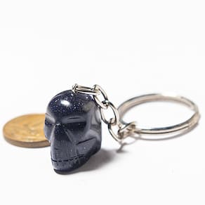Chaveiro Crânio Pedra Estrela ou Chaveiro Caveirinha Pedra Estrela, a montagem consiste em: Argola para chaveiro + Corrente Prateada + Crânio Pedra Estrela Pedra natural de garimpo assim você tem um poderoso talismã ideal para o seu dia a dia.NOME DAS PEDRAS: Pedra EstrelaCOR DAS PEDRAS: Azul Marinho com Pigmentos Brilhantes Foto IlustratitaCORTE DAS PEDRAS: Crânio Polida em VibradorBRILHO CLARIDADE DAS PEDRAS: Não tem Claridade com alto Brilho MEDIDAS DOS CHAVEIROS: 2,4 x 2,2 Centimetros Medidas Varia de acordo com o EstoquePESO DAS PEDRAS: 13 Gramas AproximadamenteMONTAGEM DAS PEDRAS: Argola de Chaveiro + Corrente Banho Prata + Crânio Pedra EstrelaORIGEM: Manufatura lapidação Cristaisdecurvelo MGObs: Foto Exemplar do lote a venda Ilustrativo