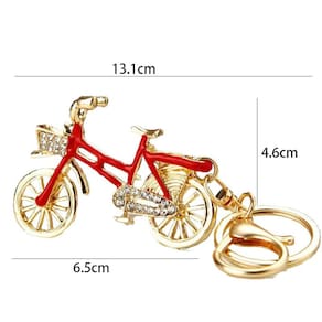 Material: metal Tamanho: 6,5* 4,6 cm Peso: 40 g Design elegante de bicicleta: apresenta um formato exclusivo de minicicicleta com detalhes em strass cintilante e uma moldura vermelha brilhante que lhe confere um apelo moderno e elegante. Construção metálica durável: feita de liga de alta qualidade com revestimento de ouro para um brilho polido e duradouro que resiste ao desbotamento e à corrosão. Leve e compacto: medindo 6,5 × 4,6 cm, este chaveiro leve cabe facilmente em chaves, carteiras, bolsas ou mochilas sem aumentar o volume. Detalhes atraentes: A combinação de esmalte vermelho e acabamento dourado com enfeites de cristal cria uma aparência impressionante e luxuosa, adequada para o uso diário. Perfeito para todas as ocasiões: ideal para ciclistas, amantes da moda e qualquer pessoa que goste de acessórios criativos com charme e personalidade.