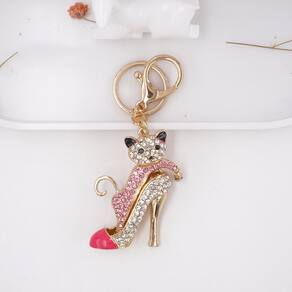 Material: liga, strass Tamanho: 6* 4,5 cm Peso: 50 g Design criativo de gato e salto — Apresenta uma adorável figura de gato apoiada em um sapato cintilante de salto alto, combinando elegância e diversão em um charmoso chaveiro. Material de liga de alta qualidade — Feito de liga de zinco durável com polimento fino, garantindo brilho, resistência e beleza duradoura. Enfeite de strass — Decorado com cristais cintilantes em tons de rosa e branco, adicionando um toque de glamour e luxo aos seus acessórios. Versátil e funcional — perfeito como chaveiro para chaves de carros, bolsas, bolsas ou mochilas, trazendo estilo e personalidade aonde quer que você vá. Compacto e elegante — leve e com um design bonito (6 × 4,5 cm), adequado para mulheres que gostam de acessórios exclusivos, coloridos e modernos.