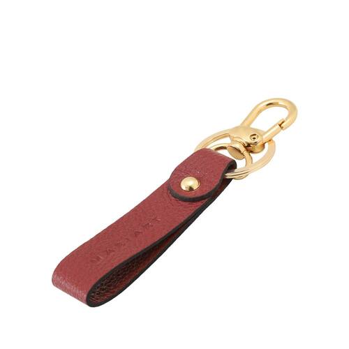 construção em couro de espessura média e toque macio. Mosquete, argola e rebite metálico. Logomarca prensada em relevo na peça. Dimensões: 08 x 02 x 01 cm largura x altura x espessura