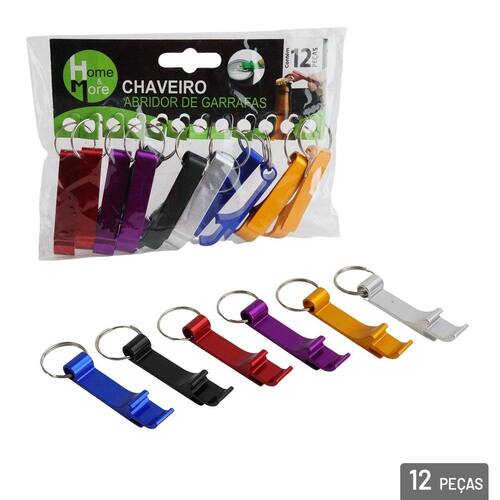 Chaveiro de Metal 6cm 12 Peças Abridor Garra - Seu design funcional facilita o manuseio ao abrir garrafa, produzido em metal permite que você o utilize com agilidade e segurança;\nEspecificações:\nMarca : HM\nTipo de material : Metal\nCores ou Estampa : Color\nDimensões do Produto : 6 X 1,5 X 0,5 CM\nDimensões da Embalagem : 13 X 15 X 3 CM\nPeso Bruto (Gramas) : 0.108 Marca: Não Informado