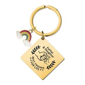 Material: metal Tamanho: 2-6 cm Peso: 17 g Design familiar emocionante: apresenta uma mensagem gravada “Pai e filha, melhores amigos para toda a vida” com uma ilustração fofa de mãos fazendo uma promessa mindinha, simbolizando um vínculo especial. Pingente de arco-íris colorido: o chaveiro também inclui um pingente de arco-íris e nuvem, adicionando um toque divertido e colorido a este acessório sentimental. Construção metálica durável: feito de metal de alta qualidade, este chaveiro é forte e leve, tornando-o perfeito para uso diário sem sacrificar o estilo. Versátil e funcional: ideal para prender às chaves do carro, mochilas, bolsas ou como acessório decorativo, tornando-o uma adição versátil a qualquer conjunto de chaves ou bolsas. Perfeito para ocasiões especiais: um lindo presente para casais de pai e filha, ideal para celebrar laços familiares, aniversários ou qualquer ocasião que celebre o amor e a conexão.