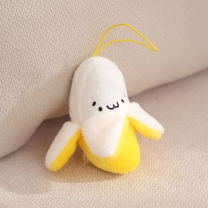 Material: pelúcia Tamanho: banana 8 cm Peso: 40 g Design divertido de banana: apresenta um lindo formato de banana descascada com um rosto sorridente, perfeito para quem adora adoráveis acessórios com temas de frutas. Textura macia e abraçável: feita de tecido de pelúcia de alta qualidade que é ultramacio ao toque, confortável e durável para o uso diário. Leve e fácil de transportar: o design compacto de 8 cm o torna ideal para fixar em chaves, bolsas, bolsas ou capas de celular sem volume. Cor amarela vibrante: cores brilhantes e alegres que dão um toque divertido ao seu estilo pessoal e ajudam você a identificar suas chaves com facilidade. Apelo universal: ótimo para mulheres, homens e crianças que gostam de lindos chaveiros de pelúcia, adequados para acessórios diários, escolares ou passeios casuais.