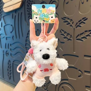 Material: pelúcia Tamanho: 11,5* 12* 6,5 cm Peso: 40,4 g Design encantador: este adorável cachorrinho de West Highland Terrier está vestido com uma linda roupa de porco rosa, tornando-o um acessório divertido e peculiar para amantes de cães e entusiastas de animais. Material de pelúcia de alta qualidade: feito de pelúcia macia e durável, este chaveiro é confortável ao toque e feito para durar, perfeito para o uso diário. Uso versátil: ideal para uso como chaveiro, pingente de mochila ou pingente de bolsa, dando um toque divertido e exclusivo aos seus itens pessoais. Compacto e leve: medindo 11,5126,5 cm e pesando 40,4 g, este chaveiro é compacto e fácil de transportar sem adicionar volume às suas malas ou bolsos. Perfeito para estudantes: um acessório delicioso para estudantes, que adiciona personalidade e charme às mochilas ou mochilas escolares, mantendo as chaves organizadas.