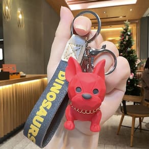 Material: resina Tamanho: 3,2* 5,7 cm Peso: 44 g Design moderno de buldogue — apresenta uma figura exclusiva de buldogue facetada em vermelho com gola metálica, combinando criatividade e estética moderna de estilo urbano. Material de resina de alta qualidade — Feito de resina durável que oferece uma textura suave, cores vibrantes e resistência ao desbotamento ou deformação. Acessório de alça conveniente — Inclui uma pulseira preta impressa com “DINOSSAUROS”, facilitando a fixação segura nas chaves do carro, mochilas ou bolsas. Compacto e leve — mede aproximadamente 3,2 × 5,7 cm e pesa cerca de 44 g, o que o torna confortável de transportar sem aumentar o volume dos acessórios. Acessório versátil para o dia a dia — perfeito para homens e mulheres que gostam de chaveiros ousados e modernos; adequado para chaves de carros, bolsas ou como um elegante pingente diário.
