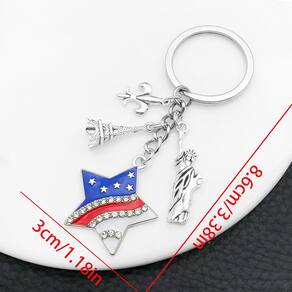 Material: liga de zinco Tamanho: 3* 8,6 cm Peso: 11g Design patriótico: com uma estrela adornada com a bandeira americana, junto com miniaturas da Estátua da Liberdade e da Torre Eiffel, este chaveiro captura o espírito dos EUA e da França. Liga de zinco premium: feito de liga de zinco durável, este chaveiro garante qualidade duradoura, com detalhes vibrantes de esmalte que não desaparecem com o tempo. Perfeito para viajantes: ideal para quem gosta de explorar e apreciar pontos turísticos internacionais, este chaveiro é uma ótima maneira de mostrar amor pelos EUA e pela França. Compacto e elegante: com 3x8,6 cm e 11g, este chaveiro tem o tamanho perfeito para prender em bolsas, chaves ou mochilas sem aumentar o volume, sem deixar de ser ousado. Versátil e significativo: um ótimo acessório para celebrações do Dia da Independência, entusiastas de viagens ou como peça comemorativa para aqueles apaixonados por marcos globais e patriotismo.