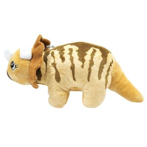 Chaveiro com bichinho de pelúcia em forma de dinossauro com três chifres. Tem 20 cm de comprimento e lembra o Tricerátops. Material: poliéster; Enchimento: fibra de poliéster; Produto certificado por Órgão acreditado pela CGCRE do INMETRO Ean: 7899806208016