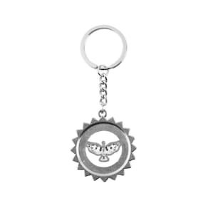 Chaveiro Espírito Santo Aura Prateada ou Dourada 4cmChaveiro Espírito Santo Aura Prateada ou Dourada 4cmChaveiro de metal com enfeite na imagem de Espírito Santo de 4 cm de altura com uma aura prateada ou dourada.Detalhes:Peso: 20 gramas;Altura: 12cm;Largura: 6cm.