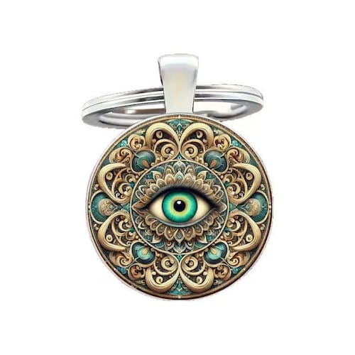 Material: Metal Tamanho: 2,7* 6 cm Peso: 15 g Design de olhos místicos: apresenta um padrão detalhado de mandala com um centro azul vívido dos olhos, simbolizando proteção e energia positiva. Artesanato em metal de alta qualidade: feito de liga metálica durável, resistente à ferrugem e ao desbotamento, mantendo seus detalhes intrincados. Compacto e leve: medindo 6 × 2,7 cm e pesando apenas 15 g, ideal para uso diário em chaves, bolsas ou mochilas. Artístico e simbólico: combina elementos boêmios e espirituais, adequados para quem aprecia acessórios significativos com um toque artístico. Uso versátil: perfeito como um elegante organizador de chaves ou como um pingente decorativo para seu carro, bolsa ou espaço doméstico.