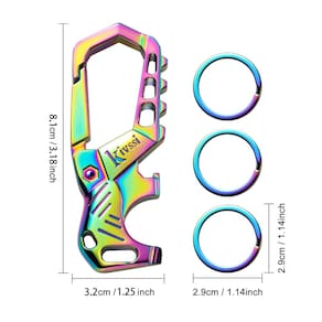 Este é o tipo de chaveiro que um cara durão deve ter: é feito de metal por toda parte e é fácil de carregar chaves de casa e chaves do carro com segurança. - Peso do tamanho individual: comprimento do tamanho 8 cm, largura 1,63 cm, altura 1 cm, peso cerca de 65 g - Introdução do material: o chaveiro é feito de material metálico, resistente a arranhões e ferrugem durável - Descrição da função: Integra três funções: chaveiro, chave de fenda de cabeça chata e abridor de garrafa, tem três anéis no clipe para ajudar a organizar suas chaves, abrir a tampa da garrafa, abrir a tampa da lata, abrir um expresso que também é conveniente - Introdução ao design: é uma estrutura nova e estranha do chaveiro, design estético com sentido mecânico, design ergonômico, a forma está alinhada com a aderência manual - Estilo versátil: chaveiro para homens e mulheres, seja para chaves de família, chaves de carro ou como um acessório de moda, ele se adapta às suas necessidades