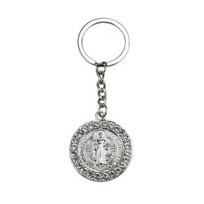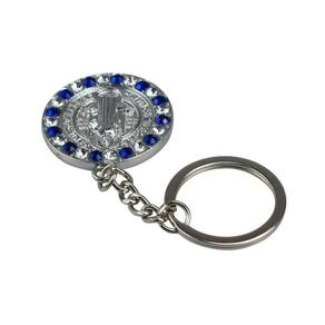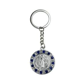 Chaveiro Medalhão São Bento Prateado e Dourado com Pedras Azuis 3.5cmChaveiro Medalhão São Bento Prateado e Dourado com Pedras Azuis 3.5cmChaveiro com enfeite na imagem do medalhão de São Bento com 3,5cm de diâmetro na cores prateada e dourada enfeitado com pedras azuis.Detalhes:Peso: 0,030 gramas;Altura: 12cm;Largura: 0,5cm;Comprimento: 5,5cm;Material: Metal.