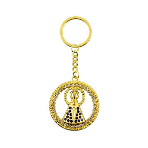 Chaveiro Nossa Senhora Aparecida Aura Circular Dourada ou Prateada 4.7cmChaveiro Nossa Senhora Aparecida Aura Circular Dourada ou Prateado 4.7cmChaveiro de metal com enfeite na imagem de Nossa Senhora Aparecida com uma aura circular na cor dourada ou prateada com 4.7 cm. Detalhes:Peso: 20 gramas;Altura: 12cm;Largura: 4.7cm;Material: Metal.