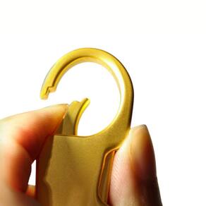 O gancho mosquetão em metal dourado brilhante oferece durabilidade e um visual elegante, perfeito para combinar com bolsas, mochilas, calças ou chaves do carro. Compacto e resistente, é uma excelente escolha tanto para uso pessoal quanto para presentear.
