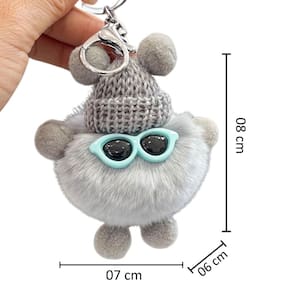 Chaveiro Pom Pom De Óculos Kawaii - Cor: Cinza