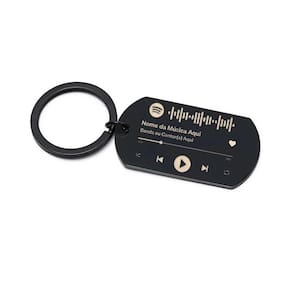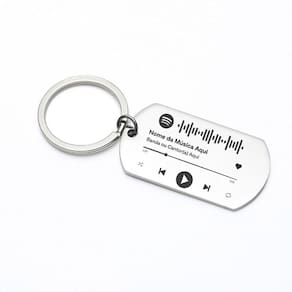 Chaveiro luxo com 4 cores disponíveis em aço inox brilhante tag com spotify code. Em alta definição
