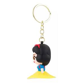 Chaveiro de metal dourado com enfeite no formato da princesa Branca De Neve de silicone de 6 cm de altura. Material: metal e silicone Código: DZF001-PS1-DPeso: 40gAltura: 6cmLargura: 5cmComprimento: 5cm