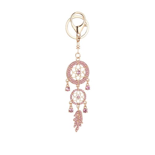 Material: Liga Tamanho: 16,9* 3,7 cm Peso: 32,3 G Design elegante do Dreamcatcher: inspirado na estética boêmia, este chaveiro de strass rosa para apanhadores de sonhos combina beleza e simbolismo em um acessório estiloso. Artesanato de alta qualidade: feito de liga metálica durável com detalhes delicados em forma de flor e cristais cintilantes, garantindo brilho e resistência duradouros. Strass cintilantes: cada seção apresenta strass rosa finamente embutidos que adicionam elegância e glamour ao seu estilo diário. Decoração versátil: ideal para chaves de carro, bolsas, bolsas ou mochilas; o design leve e o fecho seguro facilitam a fixação e o transporte. Perfeito para mulheres: um chaveiro chique que complementa qualquer roupa, ideal para quem aprecia acessórios femininos, artísticos e exclusivos no estilo boho.