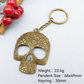 Material: metal Tamanho: 66* 49 mm Peso: 46G Design de caveira intrincado: com um chaveiro artístico de caveira com padrões florais detalhados, este acessório exclusivo adiciona um toque gótico e vintage às suas chaves, bolsa ou mochila. Construção metálica de alta qualidade: feito de metal durável, este chaveiro foi projetado para durar, oferecendo uma opção resistente e elegante para o uso diário. Tamanho perfeito e leve: medindo 66 x 49 mm e pesando apenas 46 g, é o tamanho perfeito para facilitar o transporte sem adicionar volume ao seu chaveiro ou bolsa. Ideal para estilos góticos e artísticos: este chaveiro é perfeito para quem gosta de designs góticos, vintage ou artísticos, tornando-o um ótimo acessório para entusiastas da moda alternativa. Versátil e prático: coloque-o em suas chaves, bolsas, mochilas ou até mesmo use-o como uma peça de decoração exclusiva, dando aos seus acessórios uma aparência ousada e atraente.