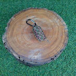 Paracord MosquetãoCaracterísticas:Feito com Paracord transado, e com Mini Mosquetão para pendurar.Medidas:Comprimento : 14 cmPeso : 36 g100% Poliamida Nylon com 7 filamentos no interiorIncluso:01 feltro inflamável 01 Linha Pesca aproximadamente 15mts 02 Boias de Pesca02 Anzóis02 Chumbos Pesca01 Agulha01 Lamina com Serra01 Mosquetão01 Pedra Pederneira01 Pedaço Papel Aluminio01 Paracord aproximadamente 2,5mts