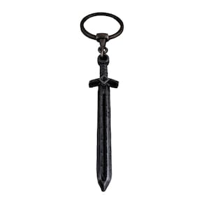 Confeccionado em metal durável pela Tenda Medieval, o Chaveiro Espada possui um acabamento cinza elegante que complementa qualquer conjunto de chaves. Suas características de design incluem uma lâmina precisa e um cabo detalhado, tornando-o uma réplica encantadora de uma espada real em miniatura.