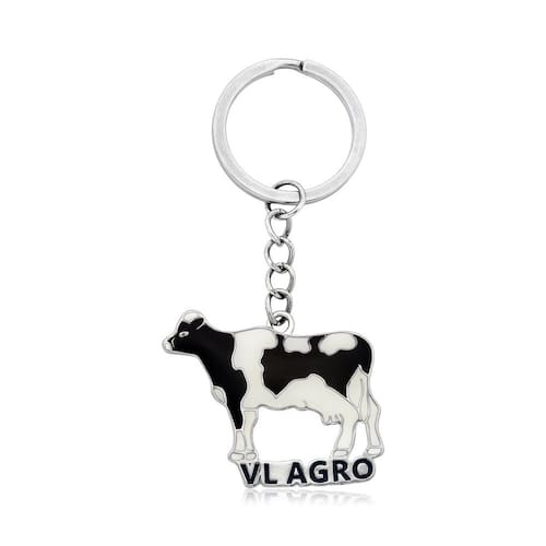 Este chaveiro foi elaborado com argola e corrente em inox e um lindo pingente de vaca, com esmaltação e revestimento do metal prateado.