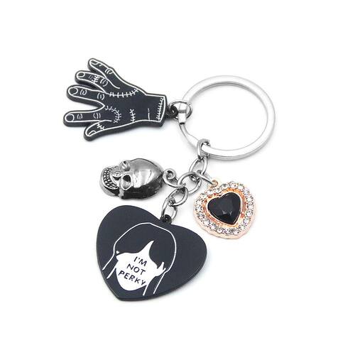 • Design gótico inspirado em Wednesday Addams Este chaveiro apresenta um design charmoso de inspiração gótica, mostrando o estilo único de Wednesday Addams. Com elementos icônicos, como o pingente de coração “I'm Not Perky” e a mão misteriosa, ele captura a essência da família Addams. • Material durável e de alta qualidade Feito com metal durável e esmalte de alta qualidade, este chaveiro tem um acabamento elegante. Sua construção robusta garante que o pingente dure, mantendo seus detalhes intrincados intactos ao longo do tempo para uma diversão duradoura. • Perfeito para amantes do Halloween ou do estilo gótico. Ideal para fãs da família Addams ou para qualquer pessoa que aprecie acessórios góticos peculiares. Este chaveiro é um presente de Halloween perfeito ou um acessório exclusivo para o dia a dia para adicionar um toque de humor negro ao seu estilo. • Chaveiro e pingente versátil. Não é apenas um chaveiro, mas também um pingente estiloso para suas bolsas, mochilas ou jaquetas. Este chaveiro é versátil, adicionando um toque de charme assustador a qualquer item pessoal, tornando-o o presente perfeito para fãs de estética assustadora ou peculiar. • Ótimo presente para fãs de Wednesday Addams, seja para aniversários, Halloween ou simplesmente porque, este chaveiro é o presente perfeito para fãs de Wednesday Addams ou da família Addams. É um item divertido e colecionável para amantes de temas góticos, sombrios e assustadores.