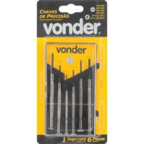 Indicado para relojoarias, eletrônicas, serviços de precisão, entre outros. Possui haste em aço cromado, ranhuras que conferem maior aderência e transmissão de força, ponta em aço temperado de alta resistência e apoio superior giratório que facilita a execução do trabalho Conteúdo da Embalagem: 1 Jogo de chaves fenda/phillips de precisão, composto por estojo plástico com 6 peças, sendo: 4 fenda 1,4 mm, 2,0 mm, 2,4 mm e 3,0 mm 2 phillips nº 0 - 1/8 e n° 1 - 3/16 Especificações: Material do corpo da chave: Aço carbono Acabamento da Chave: Fosfatado preto Ean: 7893946493516