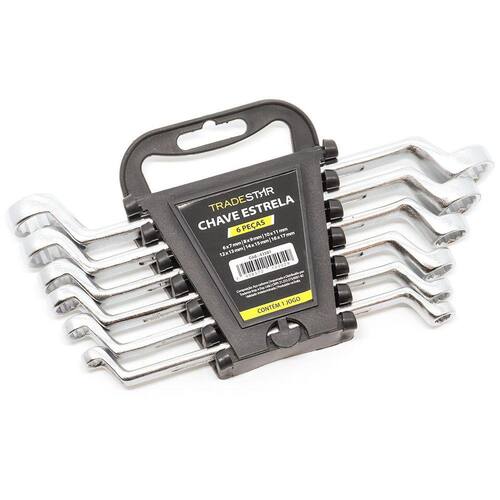 Apresentamos o Jogo de Chaves Estrelas Profissional da Tradestar, com 6 peças estrategicamente escolhidas para serem suas aliadas perfeitas em tarefas de aperto e desaperto. Com medidas precisas que incluem 6x7 mm, 8x9 mm, 10x11 mm, 12x13 mm, 14x15 mm e 16x17 mm, essas chaves oferecem a versatilidade necessária para diversas tarefas.