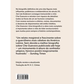 Na biografia definitiva de uma das figuras mais influentes, polêmicas e carismáticas do século XX, Jon Lee Anderson transcende o mito Che Guevara e retrata com riqueza de detalhes todas as faces de um ser humano complexo. Em 1992, Jon Lee Anderson se mudou para Havana, procurando respostas sobre a vida da personalidade histórica que lhe instigava curiosidade desde os anos 1980 — Che Guevara. O jornalista viveu na capital cubana por quase três anos, período em que teve acesso a arquivos pessoais mantidos pela viúva do líder guerrilheiro. Anderson viajou também para a Argentina, onde passou meses com os amigos de infância de Che, entrevistou seus companheiros de luta em Cuba, no Congo e na Bolívia, e conversou com personagens dos dois lados da Guerra Fria, em Moscou e na CIA. O resultado de extensa pesquisa é a saga épica de uma vida extraordinária, narrada com fluidez e imparcialidade. Publicado originalmente em 1997 e eleito o livro do ano pelo New York Times, a biografia traz informações que durante muito tempo permaneceram em sigilo. Entre outros feitos, Anderson revela como o corpo de Che foi escondido depois de seu assassinato na selva boliviana, em 1967, e recuperado, trinta anos depois, para ser levado a Cuba e enterrado no local da batalha mais célebre do revolucionário argentino. Do nascimento de Ernesto Guevara de la Serna em Rosário até sua morte em La Higuera, esta aclamada biografia reconstitui com meticulosidade a tumultuada busca de um sonho utópico: unir a América Latina e o mundo desenvolvido por meio da revolução armada para acabar de uma vez por todas com a pobreza e a injustiça. “Um relato magistral e fascinante sobre o guerrilheiro mais célebre da América Latina. Sem dúvida a melhor biografia sobre Che Guevara publicada até hoje — um monumento à altura do sonhador utópico, heroico mas tragicamente frustrado.” — Sunday Times Ean: 9788535935455