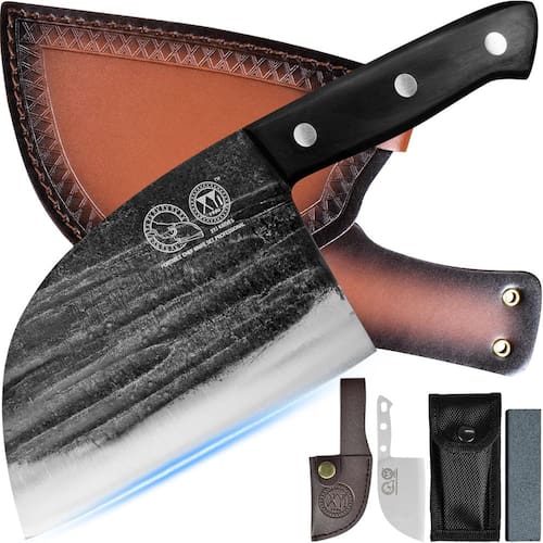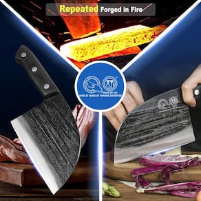 Incluído na embalagem: 1 faca de açougueiro de 15 cm (para cortar cortar, fatiar vegetais, carne, carne e peito) 1 capa de faca de couro (fácil de carregar e pode ser anexada a um cinto). 1 mini pedra de amolar (afie a faca cega). Especificações: Peso da faca: cerca de 1 lb (457 gramas) Comprimento total da faca: 10,66 polegadas (271 mm) Largura da lâmina: 3,85 polegadas (98 mm) Comprimento da lâmina: 6 polegadas (150 mm) Altura da lâmina: 3,5 cm Espessura da lâmina: 5 mm Material da lâmina: aço revestido de alto carbono forjado feito à mão Material do cabo: Pakkawood Material da pedra de amolar: Corindo Design da alça: haste de aço integrada completa + madeira + fixação de rebite Material da bainha: couro PU Característica: Cutelo de faca de cozinha multiuso: esta faca de açougueiro profissional pode lidar facilmente com suas tarefas diárias de cozinha de fatiar, cortar fatiar e picar legumes e carne. Faca chinesa de aço revestido de alto carbono: esta faca de chef açougueiro é feita de aço manganês, o cabo e a lâmina são integrados sem solda, o que é firme e durável para eliminar o cabo quebrado. Cabo de madeira Full Tang: O cabo ergonômico Full Tang pode evitar que a lâmina seja confortável de segurar e efeito antiderrapante. A faca de açougueiro cutelo de cozinha é de grande beleza, desempenho impecável, este design forte com uma boa resistência e durabilidade. História da faca de forjamento: As facas são afiadas manualmente por trabalhadores com mais de 30 anos de experiência usando moedores de facas naturais extraídos do Monte Emei. Em comparação com facas de cozinha feitas com formas mecânicas, a vida útil dessas facas é mais longa. Devido à habilidade de têmpera feita por trabalhadores experientes e à tecnologia de formação exclusiva com diferentes métodos de aquecimento, o equilíbrio entre a rigidez e a tenacidade dessas facas é para torná-las mais duráveis. Mangas de faca de couro para transporte: A faca de açougueiro de cozinha vem com uma bainha de couro exclusiva para proteger a lâmina da faca, bonita e mais segura, e pode ser presa ao cinto para facilitar o transporte ao usar ao ar livre. (Pode haver um cheiro da bainha de couro, pendure em um local ventilado por alguns dias quando você receber.) Cuidado: Não coloque na máquina de lavar louça. Mantenha longe do alcance das crianças. A faca de açougueiro é feita de aço manganês, fácil de enferrujar. Não mantenha a ponta e a ponta da faca voltadas para as pessoas. Não pegue a faca à mão quando a faca cair. Substâncias ácidas ou alcalinas não podem permanecer na lâmina por um longo período. Limpe e seque a faca após o uso e coloque-a no local seco. - ?Marca XYJ ?Fundada em 1986, as facas XYJ são uma marca líder conhecida por seu design ergonômico e mecânico baseado em alavanca, com foco em fornecer experiências de corte superiores. Nossa equipe se dedica a criar facas de alta qualidade com nitidez excepcional, design simples, ótimo equilíbrio e praticidade. As facas XYJ não são apenas ideais para atividades ao ar livre, como acampamento, mas servem como conjunto de facas de chef portáteis para cozinha. Escolha facas XYJ para excelente desempenho de corte e manuseio confortável - ?Design ergonômico completo?A faca XYJ possui um design ergonômico completo para melhorar a estabilidade e o conforto, proporcionando melhor equilíbrio e durabilidade. Também permite corte sem esforço, reduzindo a tensão e a fadiga, oferece controle preciso de corte. Rebitado com reforço para garantir aderência e estabilidade absoluta que garante conforto e manobrabilidade. No geral, design ergonômico da alça para controle superior da mão, agilidade, conforto e estabilidade para uma experiência de corte de cozinha sem esforço e eficiência - ?Tecnologia de forjamento artesanal?As facas XYJ são afiadas manualmente por trabalhadores com mais de 30 anos de experiência. A lâmina é forjada usando um tratamento de acabamento lavado com pedra e martelo, tornando-a resistente, resistente ao desgaste e antiaderente. Em comparação com as facas tradicionais, as facas XYJ podem fornecer uma vida útil mais longa. A faca de cozinha forjada de alta qualidade é feita por operações sofisticadas, incluindo têmpera, martelagem, têmpera, fixação, etc., e uma série de ciclos operacionais contínuos - ?Aço de alto carbono premium?A faca XYJ é forjada em aço de alto carbono com alta qualidade, alta dureza e resistência ao desgaste. A borda polida à mão em cada lado tem um desempenho extraordinário e uma vida útil mais longa, ajuda você a cortar suavemente com facilidade. Pode facilmente fatiar, cortar e picar, mas pode não suportar as forças exercidas durante o corte dos ossos, o que pode causar danos. A textura martelada na lâmina não apenas a torna chique e única, mas a torna antiaderente. - ?Conveniente para transportar?As facas XYJ vêm com uma bainha de faca exclusiva para garantir que sua lâmina seja cuidadosamente protegida em casa ou em movimento. Um passador de cinto pode ser anexado ao cinto para facilitar o transporte e fácil acesso. Além disso, XYJ faca de chef de alto carbono é bem embalada em uma caixa de presente requintada, perfeita como presente para pais, amantes, chefs em dias especiais como Dia de Ação de Graças, Ano Novo, aniversários, Natal, Halloween, inauguração de casa e aniversários, com seus excelentes pontos de venda