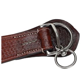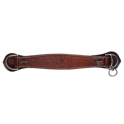 Chinchador A Pantaneira, fabricado em couro nobre com costuras reforçadas e nylon na parte inferior, trabalhado em bordados artesanais com desenhos, detalhes em couro cru e ferragens em aço inox. Utilizado na parte superior do arreio para fixar o látego e o contra-látego da barrigueira dianteira, possui destorcedor onde é fixado o laço, evitando que ele venha a torcer durante a laçada.