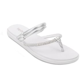 O Chinelo Beira Rio é a escolha perfeita para quem quer aliar conforto e estilo. Confeccionado em material alternativo de alta qualidade, ele apresenta tiras finas metalizadas no cabedal, sendo uma delas delicadamente adornada com strass, trazendo brilho e elegância aos seus passos. A palmilha em EVA texturizada com o nome da marca oferece o máximo de conforto, e o solado de borracha antiderrapante garante mais segurança e firmeza ao caminhar.