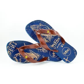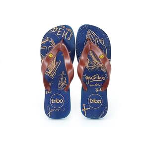 Chinelo Borracha Masculino Tiras Largas Estampa Jesus - 40 - Azul doce