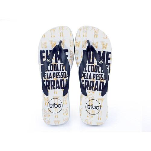 Chinelo Borracha Masculino Tiras Largas Estampado Conforto - 37 - Branco