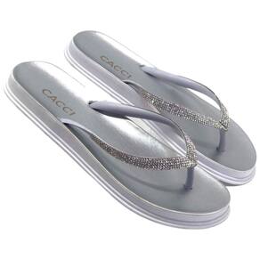 Chinelo Casual de Dedo Flat Cacci Conforto Metalizado Estilo - 37 - Branco