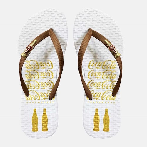 Chinelo Coca Cola Metallic Bottle Feminino Branco E Cobre , é ideal para mulheres que buscam por conforto e estilo em seu dia a dia. Confeccionado 100% com borracha, com solado antiderrapante, com tiras com divisão para os dedos e com o logo da marca estampado na palmilha.