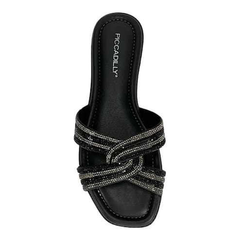Chinelo com strass bicolor Piccadilly - Preto - 34