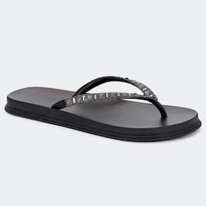 A união entre conforto e praticidade: chinelo! Solado flatform, palmilhas mais largas que garantem muito conforto! O chinelo é produzida no tom champagne, possui bico redondo, tiras finas trabalhadas com cristais em todo cabedal e palmilha anatômica, trazendo ainda mais conforto e praticidade para o seu dia a dia.